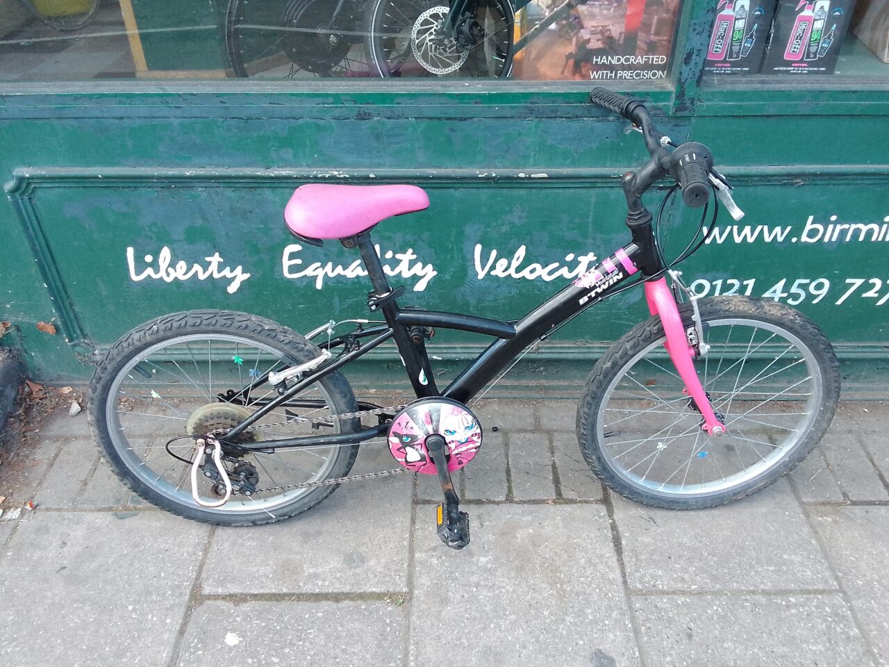 This kids bike has 20 inch wheels and gears. Like all our bikes it comes with a three month guarantee.