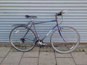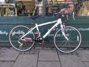 A junior size road/cyclocross bike with 26″ wheels, suitable for children from about 4 feet height upwards. New cables, brake pads and bar tape.
