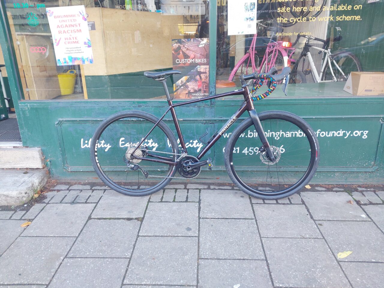 A lightweight and robust aluminium gravel bike with carbon forks. Has Shimano hydraulic disc brakes with 2×11 gears, using a mixture of Shimano Ultegra RX, 105, and GRX components. We have fitted a new front wheel, cassette, crankset, hydraulic brake pads, cables, bar tape, tyres, and chain. Comes with Shimano SPD pedals. Currently set up with inner tubes but can be set up tubeless. RRP £1300 when new (but the stock specification is lower quality than what we’ve fitted).