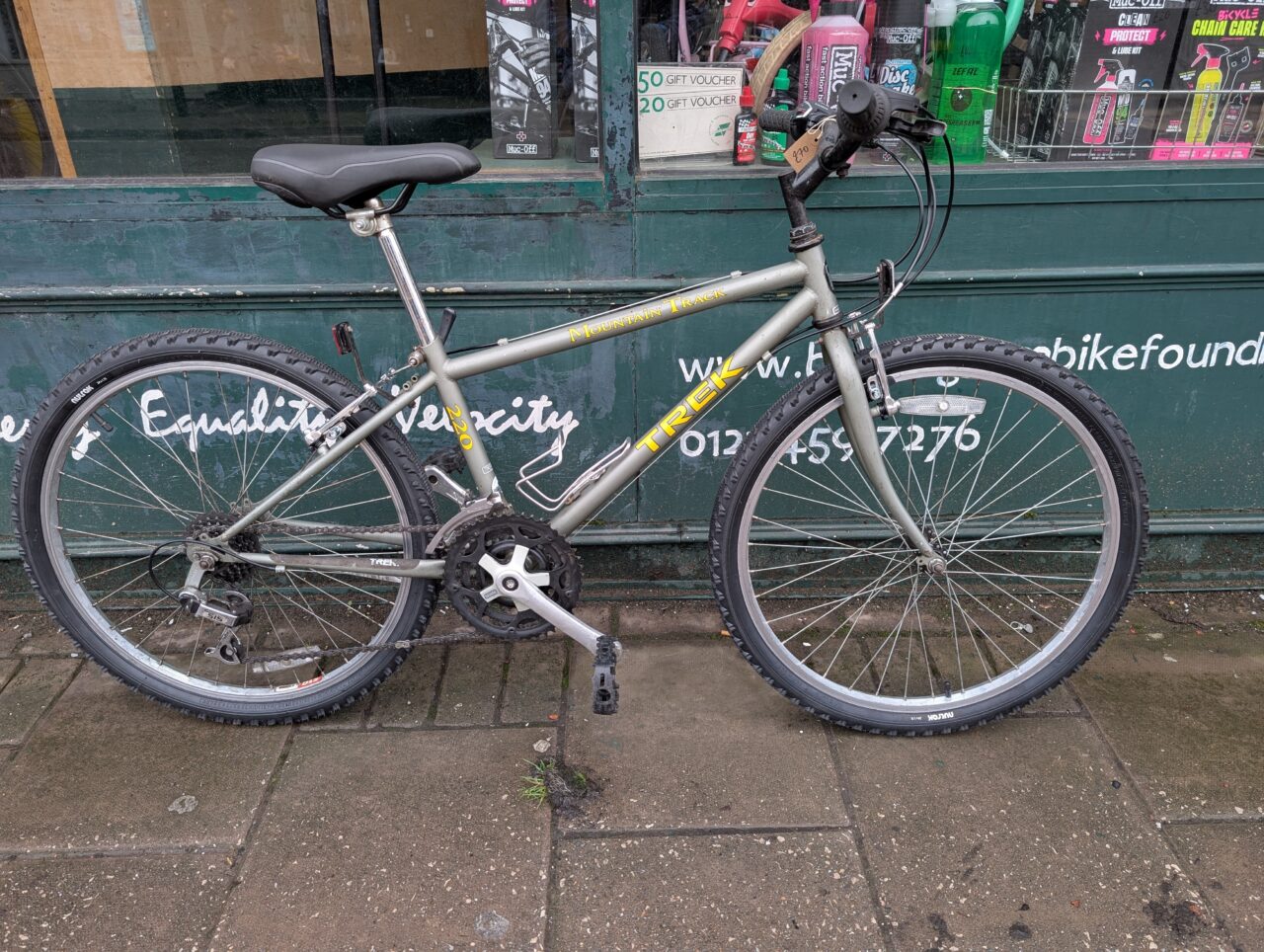 A 24-inch wheel kids bike with 18 (3×6) gears. Suitable for children aged 8-11 years old. We have replaced the brakes, bottom bracket, and tyres.