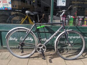 We aren’t sure of the exact model name but it looks to be from around the 1970s. We have replaced the chain, brake pads, cables, and tyres, and have serviced the hubs.